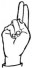 На ћирилици написано ВИОЛЕТА КЛИНЦОВ састоји се из 14 слова [?]. Исписано ћириличном једноручном азбуком за глувонеме: